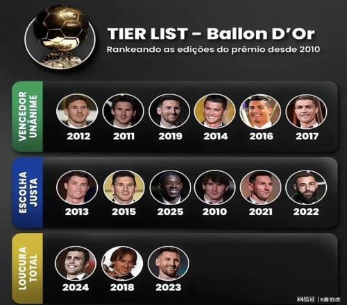 略微有争议的获奖大致有6个,分别是2013年的C罗,分歧点主要在于投票的延期所致。当然即使机会给到了C罗,葡萄牙巨星只是利用规则顺势抓住了那稍纵即逝的机会,这显然也是能力的最有力体现。